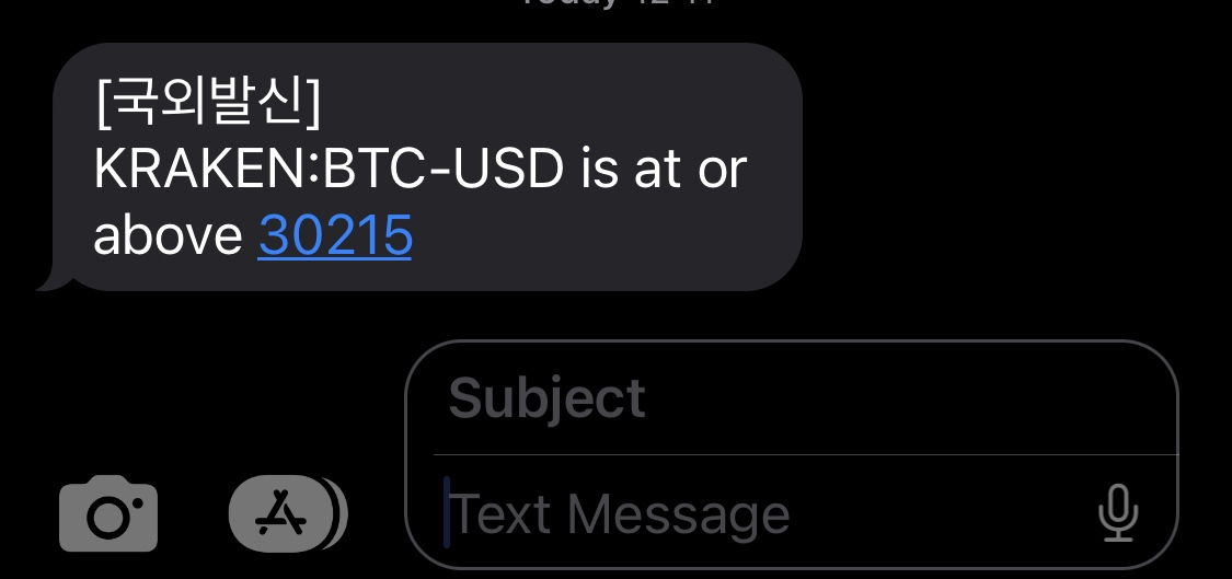 저는 비트코인 가격 목표가 설정 알림을 등록하고, 이 알림을 문자로 받아보겠습니다.